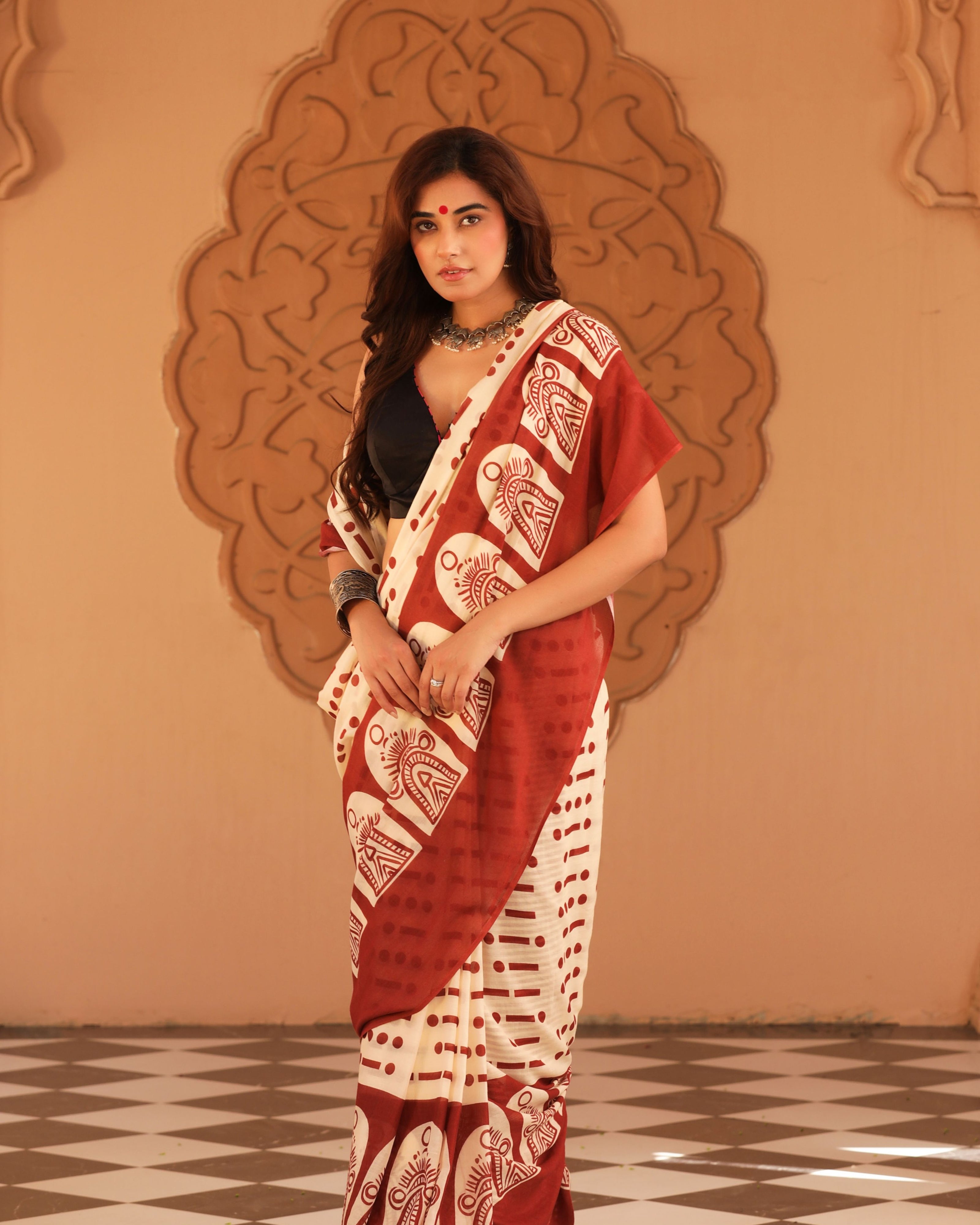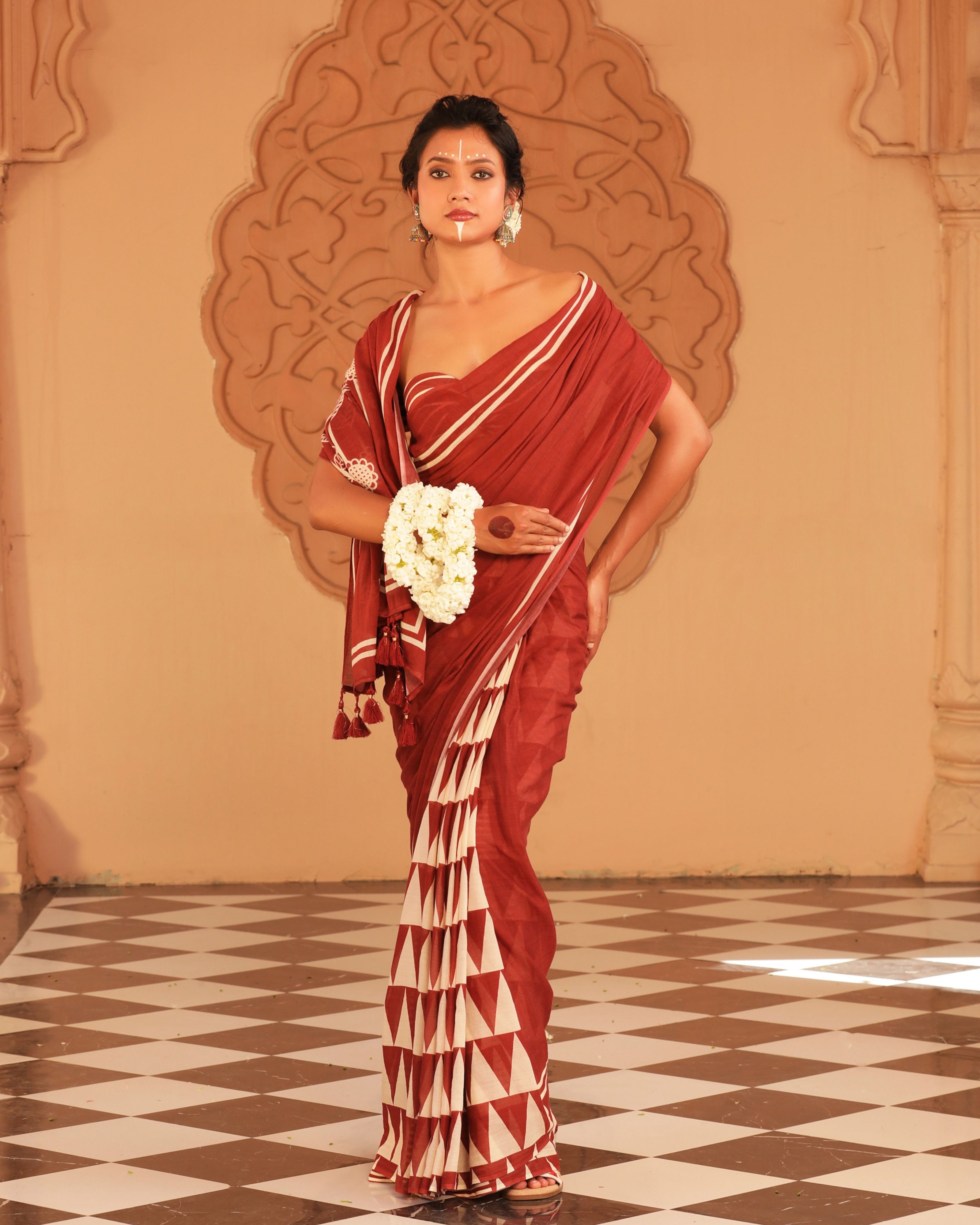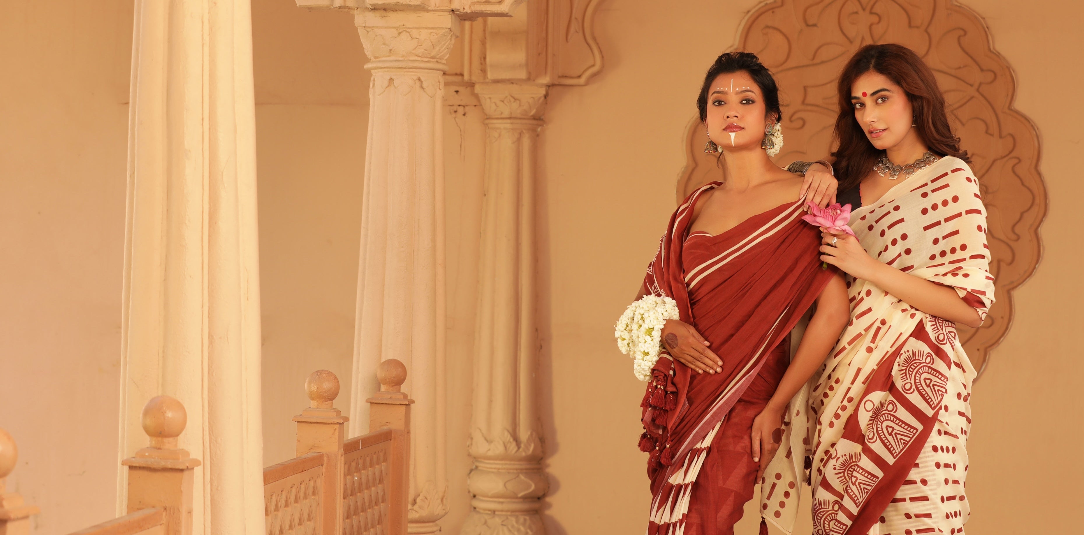 Rangat brings color, Trendy adds edge, and Chaap celebrates craft. Our saree collection blends traditional artistry with contemporary silhouettes. From bold prints to hand-done details, each drape tells a story rooted in culture yet made for today. Perfect for the woman who values heritage but dresses with intent, confidence, and individuality. Each piece is crafted to move effortlessly between occasions, from morning rituals to evening gatherings. Thoughtfully made fabrics, intricate weaves, and modern tailoring come together to create sarees that feel timeless yet relevant. Kathai’s design philosophy lies in celebrating our roots while evolving with the present, making every saree a bridge between tradition and the now.